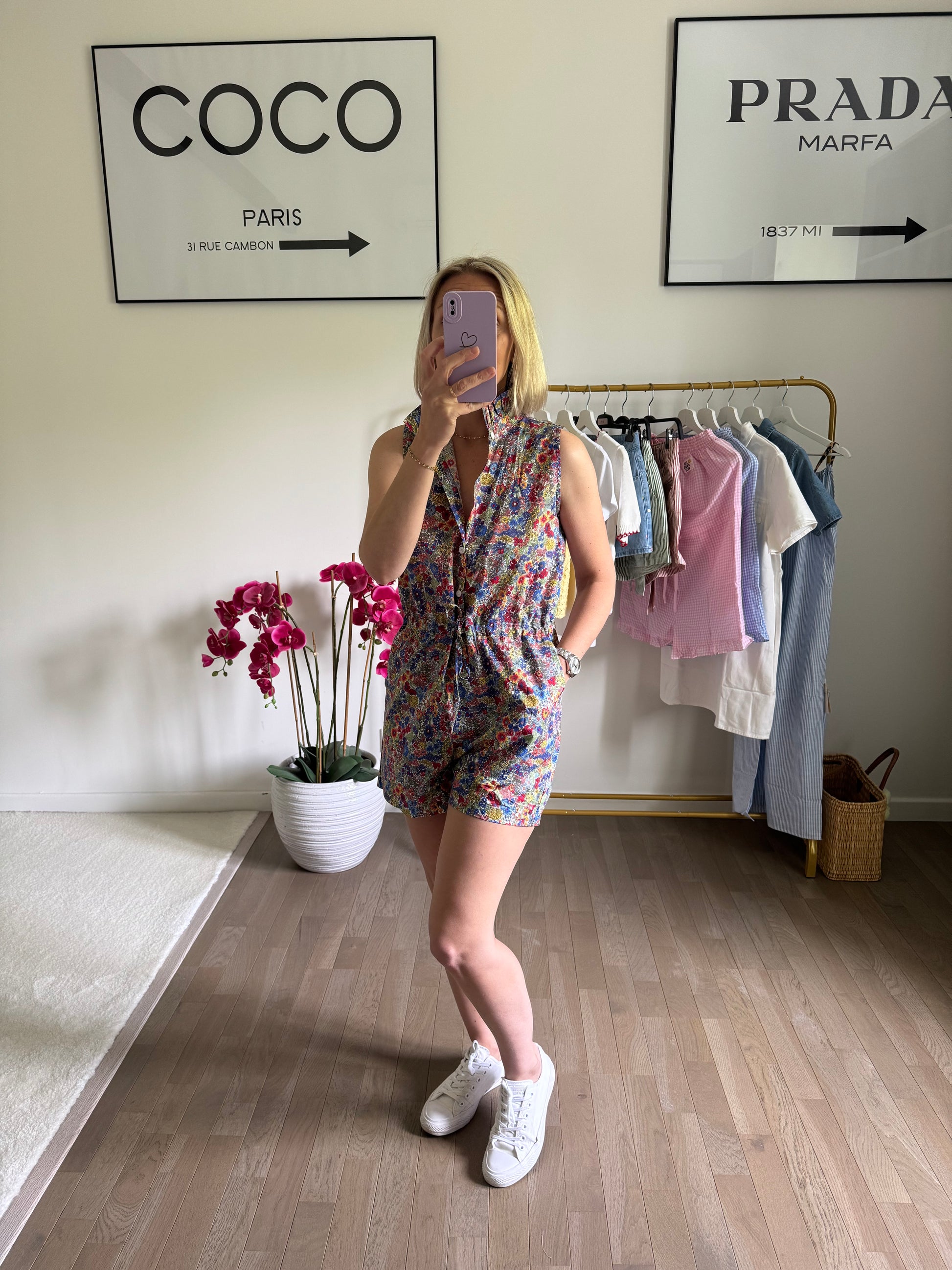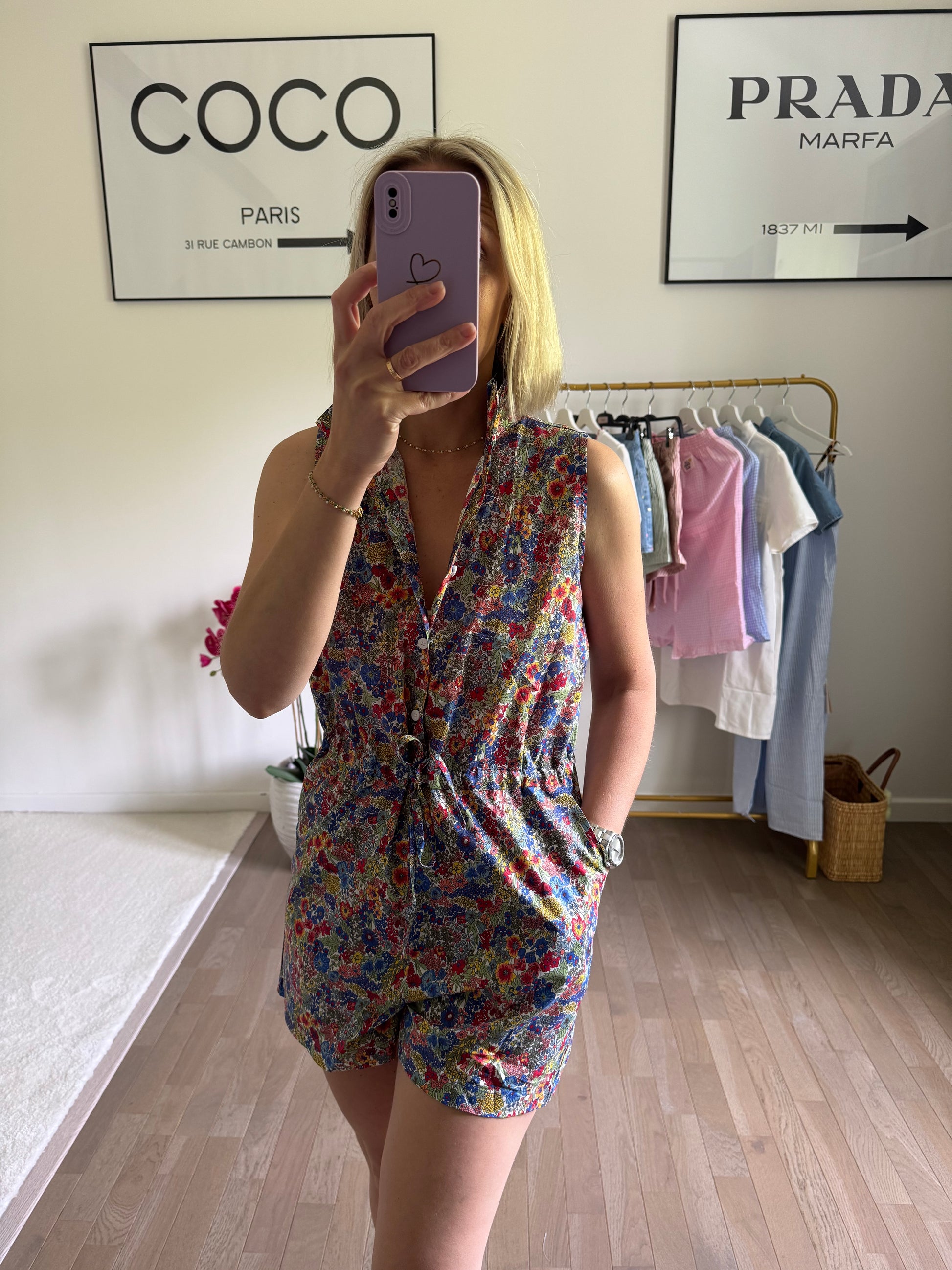 Cette combinaison short est parfaite avec sa matière légère et fluide. Elle vous enveloppera de douceur, vous permettant de bouger librement sans aucune contrainte. Le ravissant motif liberty apporte une touche de fraîcheur et de féminité. Vous allez adorer comme elle s'adapte naturellement à votre silhouette, vous offrant un look à la fois décontracté et soigné pour toutes vos activités quotidiennes !