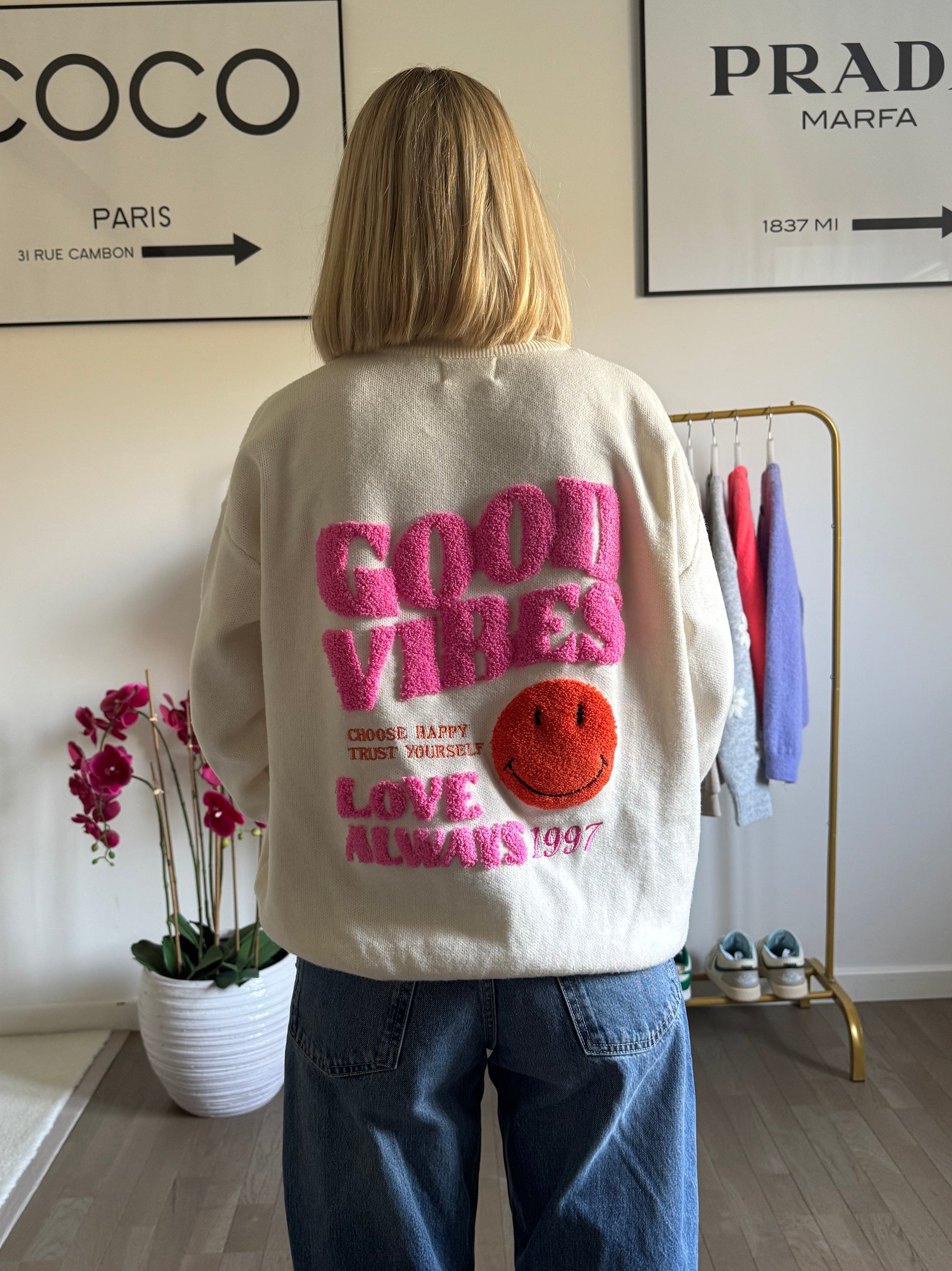 Ce pull orange et rose est parfait pour ajouter une touche de couleur et de bonne humeur à votre tenue. Il vous tiendra chaud tout en vous donnant un style unique grâce à son motif "smiley" amusant. Soyez tendance avec le pull Smiley !