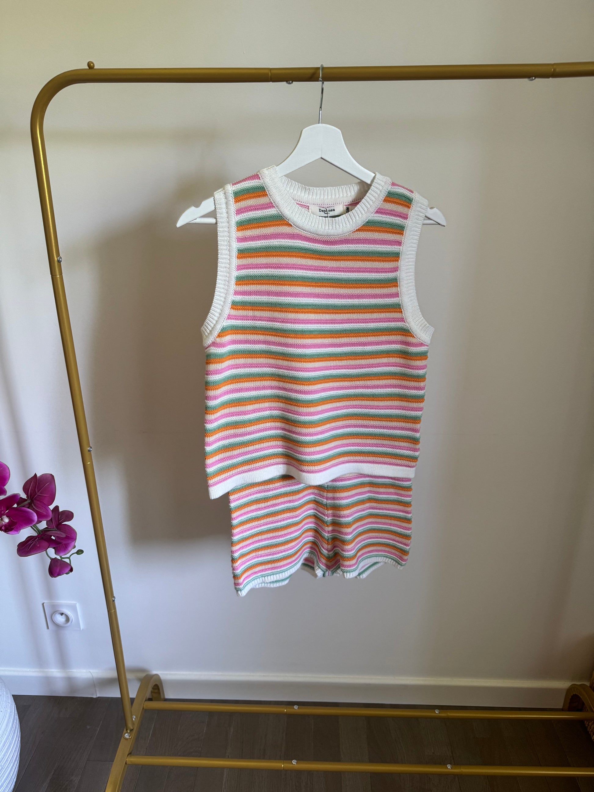 Ce short en crochet 100 % coton est idéal pour un look estival frais et confortable. Sa texture légère et naturelle vous garantit une agréable sensation sur la peau. Parfaitement assorti au top coordonné, il crée une tenue harmonieuse et tendance pour vos journées ensoleillées.