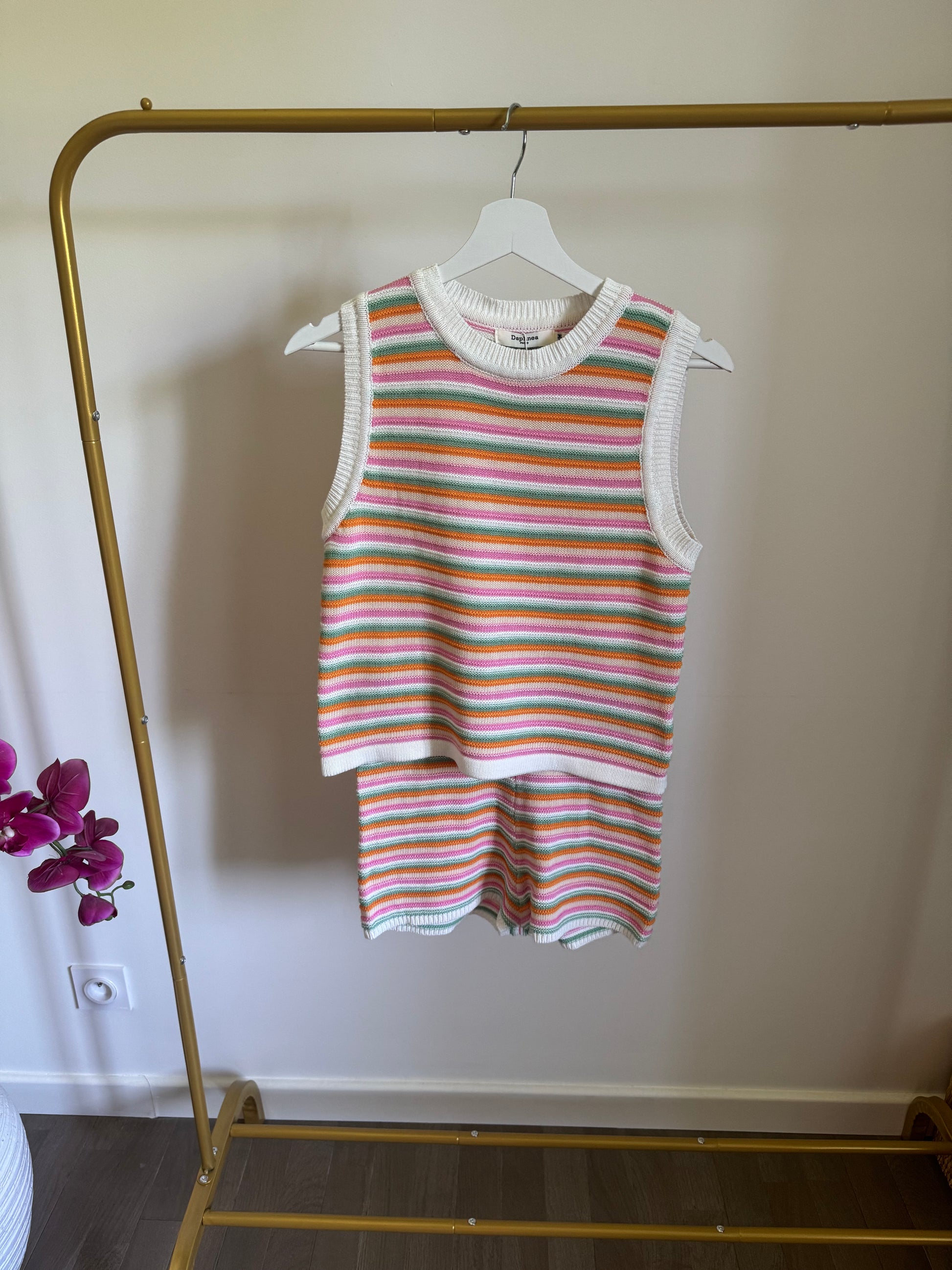 Ce top en crochet 100 % coton est idéal pour un look estival frais et confortable. Sa texture légère et naturelle vous garantit une agréable sensation sur la peau. Parfaitement assorti au short coordonné, il crée une tenue harmonieuse et tendance pour vos journées ensoleillées.