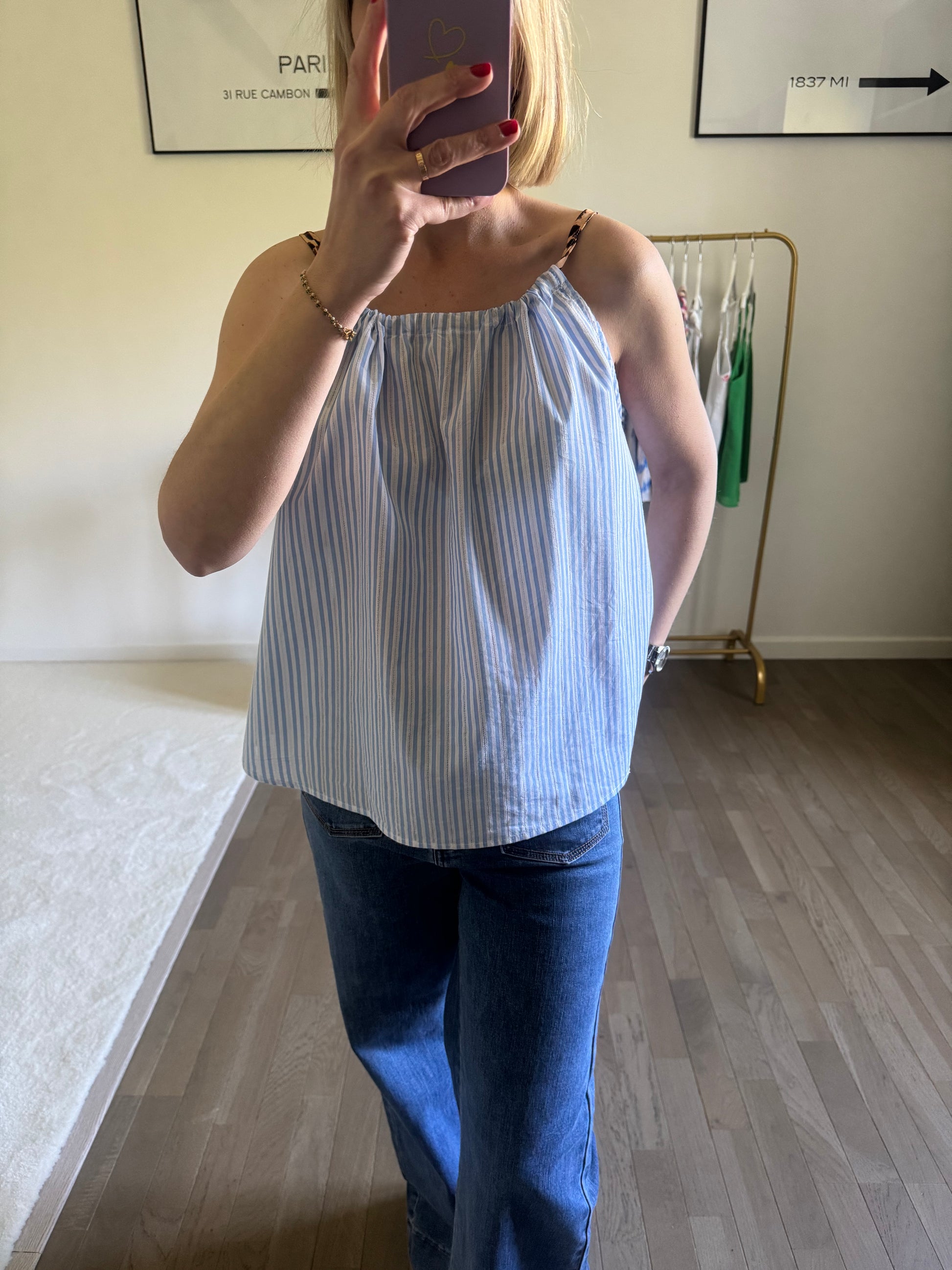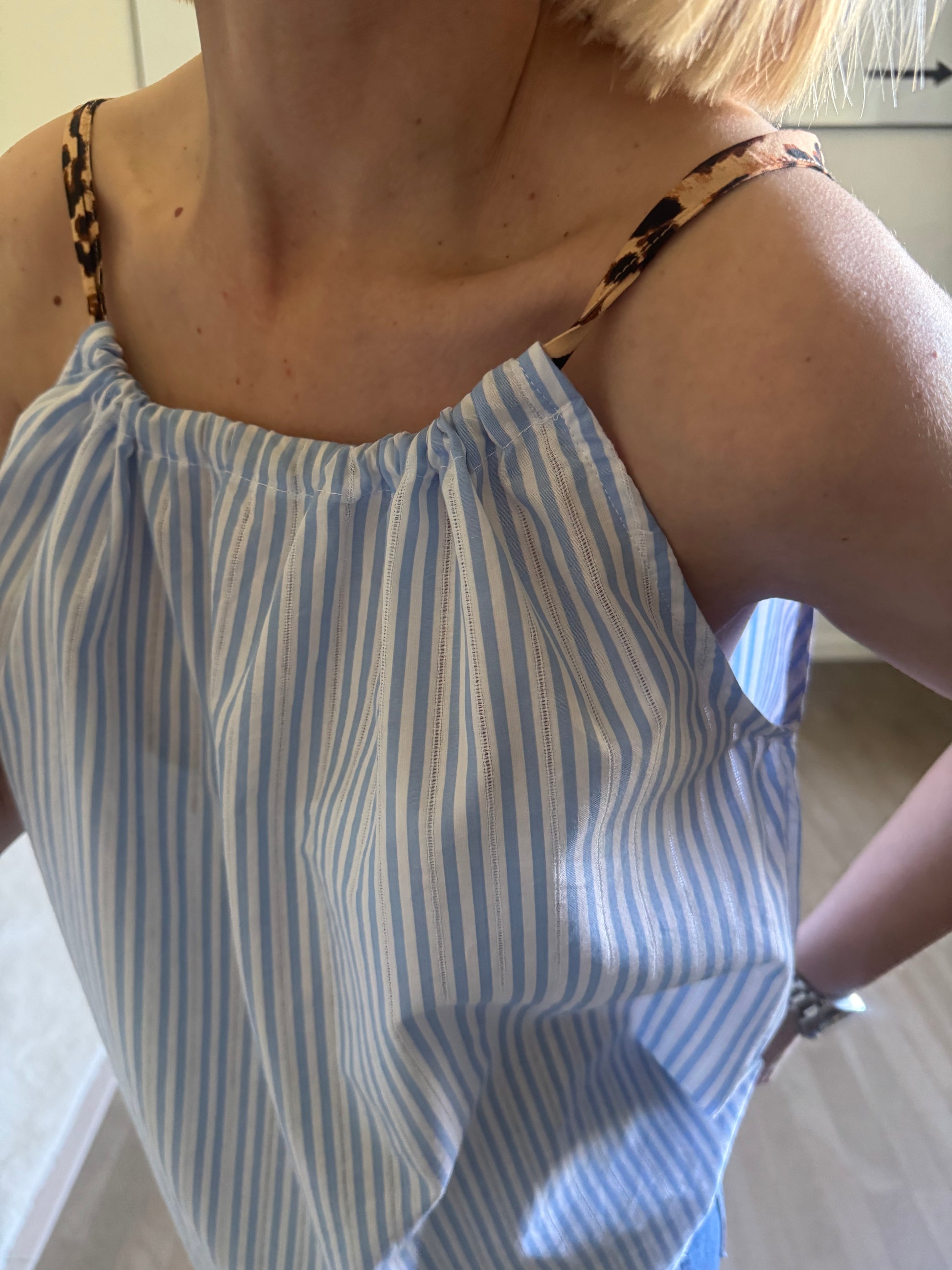 Ce top fluide en 100% coton est doté de bretelles et d'un noeud à l'arrière à motif léopard pour un look tendance et confortable. Fabriqué avec des matériaux de qualité, il offre un style unique pour toutes les occasions.